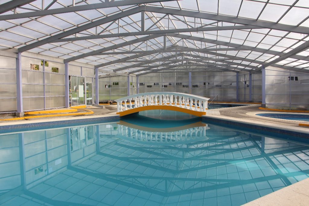 Entre sus instalaciones se encuentran cabañas, habitaciones y suites, canchas deportivas, amplias áreas verdes, albercas climatizadas, restaurante y una vista privilegiada a los volcanes Popocatépetl e Iztaccíhuatl, lo que la convierte en un espacio integral para el descanso.