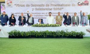 TOLUCA, México.- En un acto solemne, Herminio Cahue Calderón, secretario general del Sindicato único de Trabajadores de los Poderes, Municipios...
