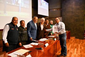 TOLUCA, México.- Herminio Cahue Calderón, secretario general del SUTEYM, y Ricardo Sodi Cuéllar, magistrado presidente del Tribunal Superior de Justicia...
