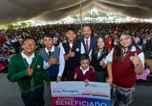 *** El alcalde realizó la entrega de becas escolares e inició la entrega de computadoras en planteles de educación básica...
