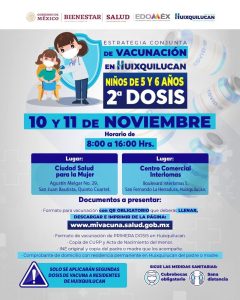 HUIXQUILUCAN DE DEGOLLADO, México.- Este jueves 10 y viernes 11 de noviembre, se aplicará la segunda dosis contra covid-19 para...