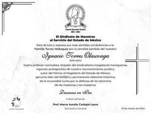 Toluca, México.- El Sindicato de Maestros al Servicio del Estado de México (SMSEM), dio a conocer que la tarde de...