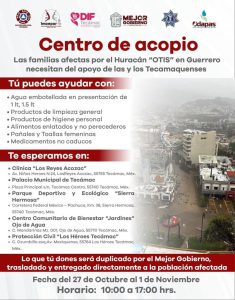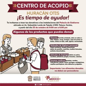 TOLUCA,México.- En solidaridad con los connacionales damnificados por el paso del huracán Otis, la Maestra Delfina Gómez Álvarez, Gobernadora del...