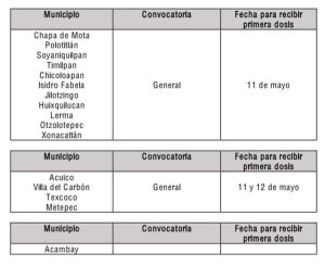 • Pueden consultar sedes y horarios en el sitio web http://edomex.gob.mx/vacunacion. Las jornadas se llevarán a cabo en un horario...