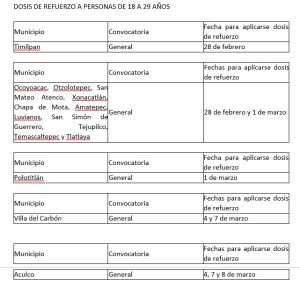 HUIXQUILUCAN DE DEGOLLADO, México.- Este lunes 28 de febrero se realizará la aplicación de las segundas dosis contra covid-19 a los...