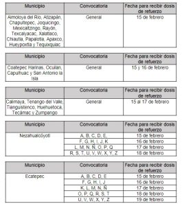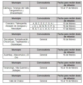 *** Pueden consultar municipios, sedes y horarios en el sitio web http://edomex.gob.mx/vacunacion. TOLUCA, México.- Del lunes 14 al sábado 19 de...