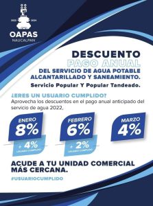 NAUCALPAN DE JUÁREZ, México.- Bonificaciones del 8%, 6% y 4%, para los usuarios que pagan anualmente por cuota fija y...