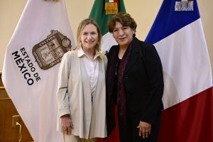 TOLUCA, México.- La Gobernadora del Estado de México, Delfina Gómez Álvarez recibió en Palacio de Gobierno a la Embajadora de...