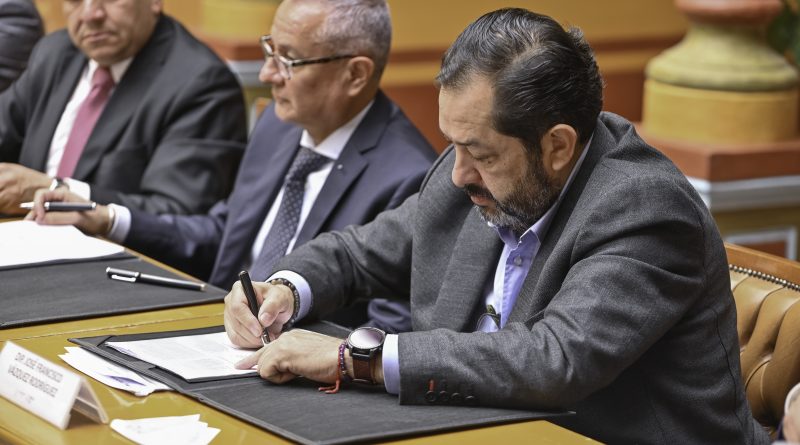 Al atestiguar la firma, el diputado José Francisco Vázquez Rodríguez (morena), presidente de la Junta de Coordinación Política de la LXII Legislatura mexiquense, destacó que este convenio contribuirá a construir un espacio de reflexión y acción pública, guiado por los principios del humanismo mexicano, corriente que pone a las personas en el centro del Estado.
