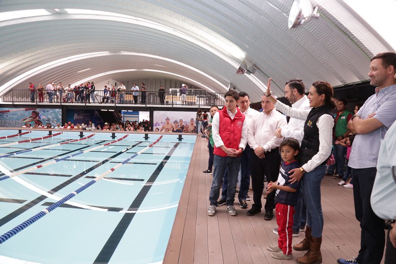 TLALNEPANTLA, México.- La alcaldesa Denisse Ugalde Alegría, señaló que su gobierno le sigue apostando a la prevención y al desarrollo social como una forma de incidir en la calidad de vida de las familias, esto al inaugurar la alberca semiolímpica del Deportivo Santa Cecilia.