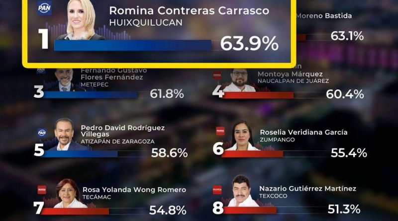 Las mediciones de Gobernarte, La Encuesta MX y Statistical Research Corporation también posicionan a Romina Contreras dentro del Top 3 nacional entre alcaldesas mejor calificadas, además de destacar que el gobierno municipal suma 46 meses consecutivos como la administración con mayor aprobación en el Estado de México.