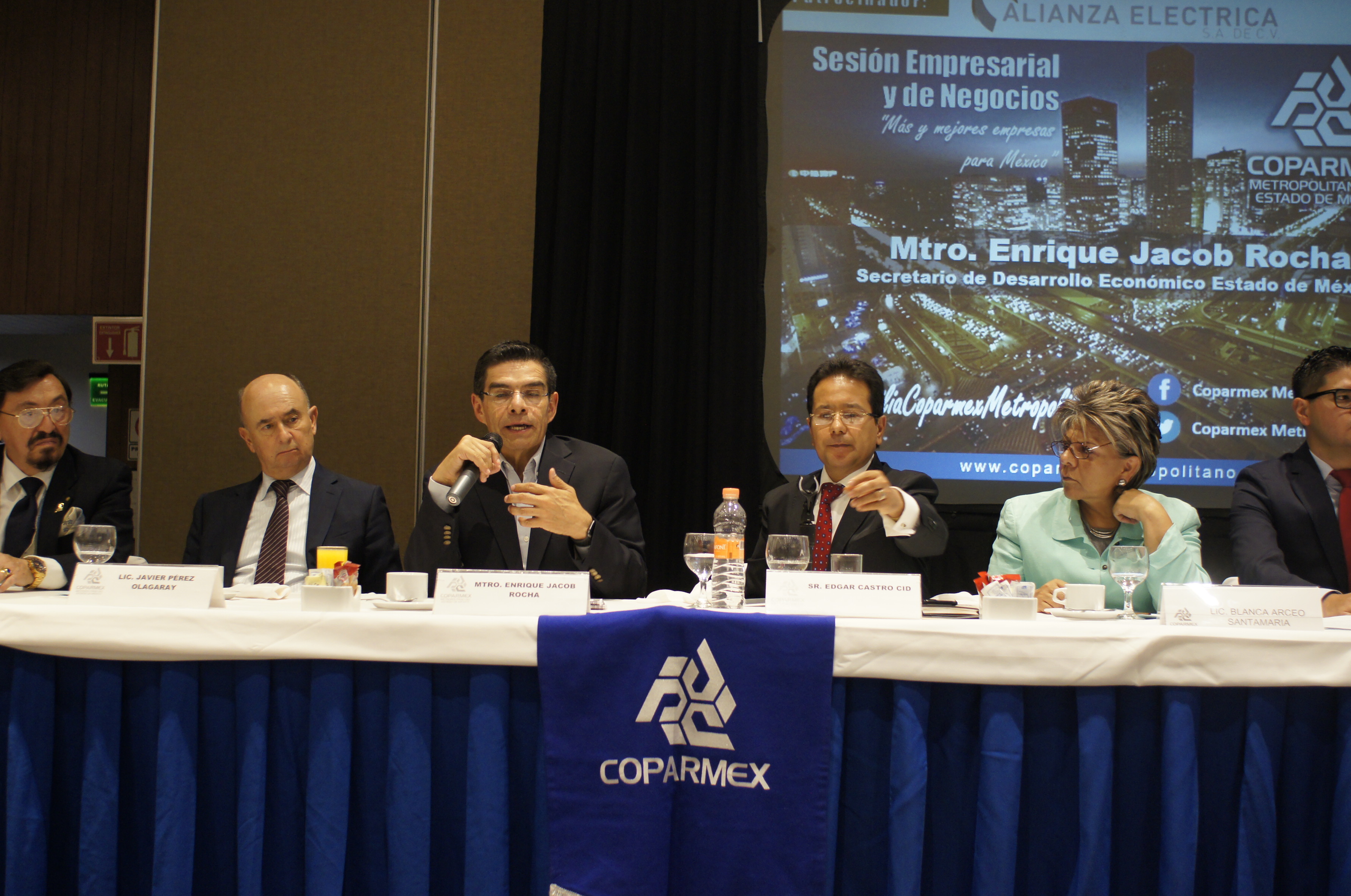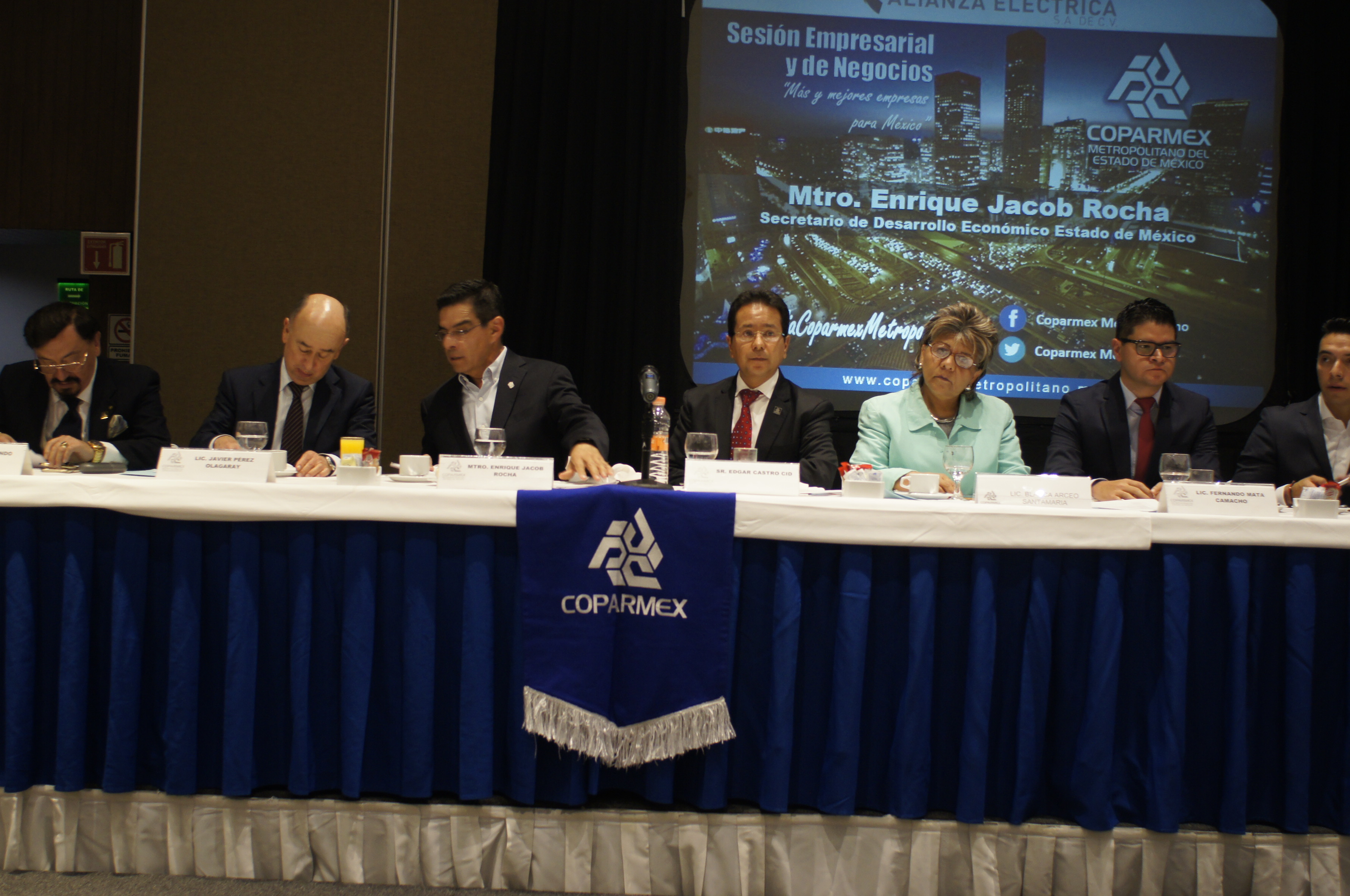TLALNEPANTLA, México.- Al encabezar una sesión empresarial y de negocios, acompañado por el secretario de Desarrollo Económico del gobierno estatal, Enrique Jacob Rocha, el presidente de COPARMEX Metropolitano, Edgar Castro Cid, hizo un llamado a los gobernantes a trabajar de manera conjunta para elaborar estrategias concertadas, que permitan consolidar las empresas, buscando en todo momento el bienestar de la sociedad.