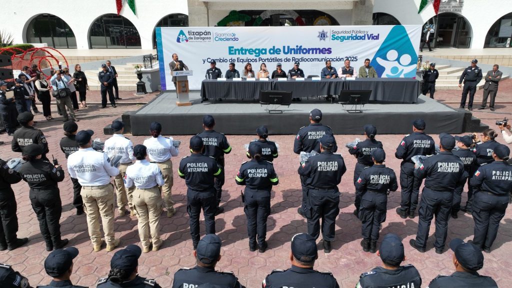 ATIZAPÁN DE ZARAGOZA, México — “Lo que usted hizo no fue invertir en una administración sino dejar un legado”, afirmó el Comisario Fabián Ricardo Gómez Calcáneo durante la ceremonia de entrega de uniformes y equipos portátiles de radiocomunicación de alta tecnología a los elementos de la Dirección de Seguridad Pública y Seguridad Vial.
