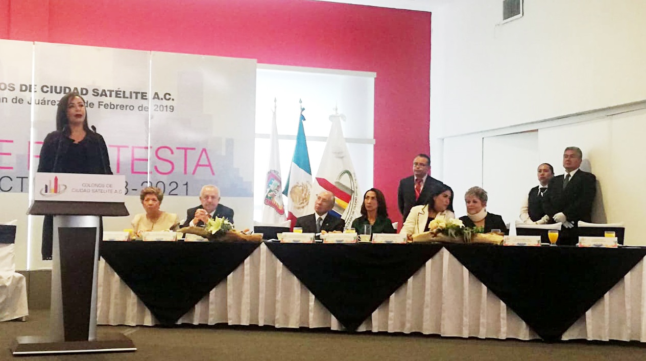 NAUCALPAN, México.- Al asumir como presidenta de la Asociación de Colonos de Ciudad Satélite para el periodo 2019-2020, Beatriz Gómez Velasco, afirmó que la clase media que habita en esa comunidad demanda ser escuchada y tomada en cuenta, porque tiene mucho que aportar para sumarse a la transformación del municipio, el Estado de México y el país, además, refrendó su compromiso de contribuir a elevar la calidad de vida de los 50 mil colonos de dicho fraccionamiento, recuperándolo como lo que históricamente ha sido: cuna del ciudadanismo.