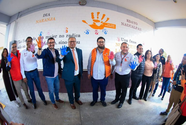 En el marco del Día Naranja, el alcalde participó en la realización del mural “La igualdad se construye a través del conocimiento: Conoce, aplica y transforma”, en la Escuela de Artes y Oficios (EDAYO) Naucalpan, junto con el secretario del Trabajo del Estado de México, Norberto Morales Poblete, como una expresión simbólica del compromiso institucional para erradicar la violencia de género.