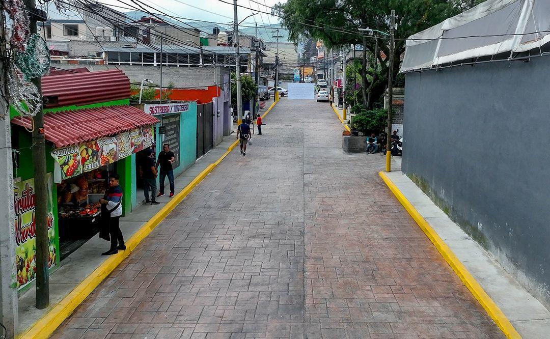 La obra contempló 284 metros lineales de rehabilitación sobre un área total de 2,761 metros cuadrados. Se colocó concreto hidráulico de 15 centímetros de espesor, guarniciones y banquetas nuevas, luminarias coloniales para mayor seguridad nocturna y reductores de velocidad para mejorar la movilidad peatonal.