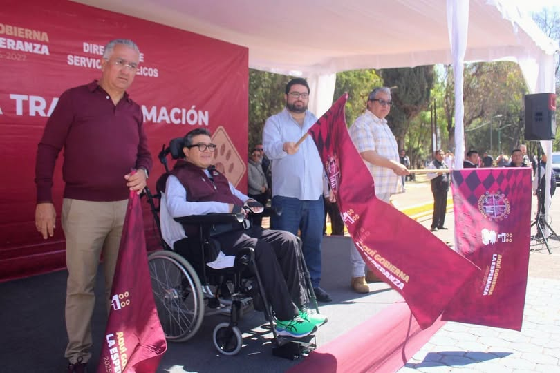 En el marco del programa Huellas de la Transformación, realizado en el Parque Naucalli, el dirigente sindical participó junto al presidente municipal y al director del área, José Antonio Gómez García, en la entrega del equipamiento destinado a fortalecer la operatividad de los servicios públicos.