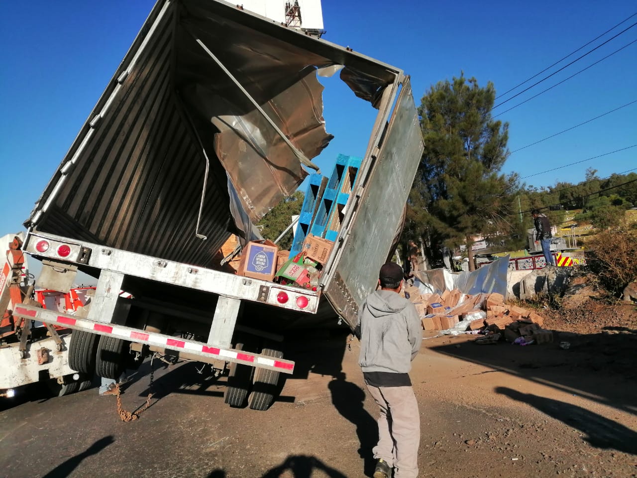 Con el apoyo de grúas, el tractocamión fue puesto sobre sus ruedas para ser retirado, con lo que se evitaron congestionamientos viales y molestias a los automovilistas que circulan por el lugar