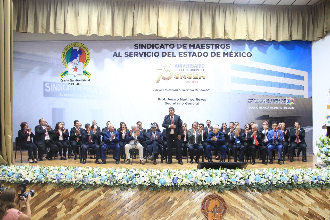 “El sindicalismo surgió como respuesta a las necesidades que enfrentaban los maestros mexiquenses”, afirmó Jenaro Martínez Reyes, Secretario General del Sindicato de Maestros al Servicio del Estado de México (SMSEM), durante la conmemoración del 73 aniversario de la organización en el Auditorio “Forjadores de la Unidad Sindical”.