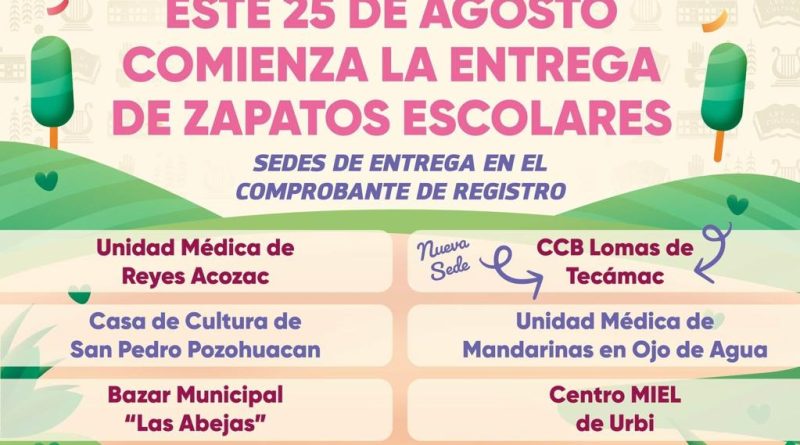 La entrega se realizará en un horario de 9:00 a 17:00 horas en diez sedes distribuidas estratégicamente en el municipio, entre ellas: la Unidad Médica “Reyes Acozac”, Casa de Cultura San Pedro Pozohuacan, Bazar “Las Abejas”, el Ágora Aranjuez en Villas del Real y el Auditorio de Ozumbilla, entre otros.