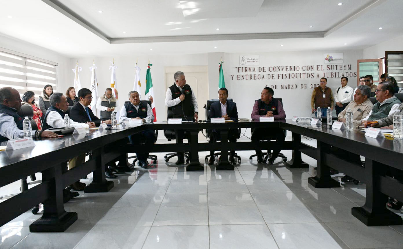 ATLACOMULCO, México.- “El convenio que estamos firmando hoy nos da certeza jurídica de la relación que existe entre la institución y nosotros, los servidores públicos”, dijo Herminio Cahue Calderón, secretario general del SUTEYM, durante la firma del Convenio de Sueldos y Prestaciones 2026 con autoridades municipales.