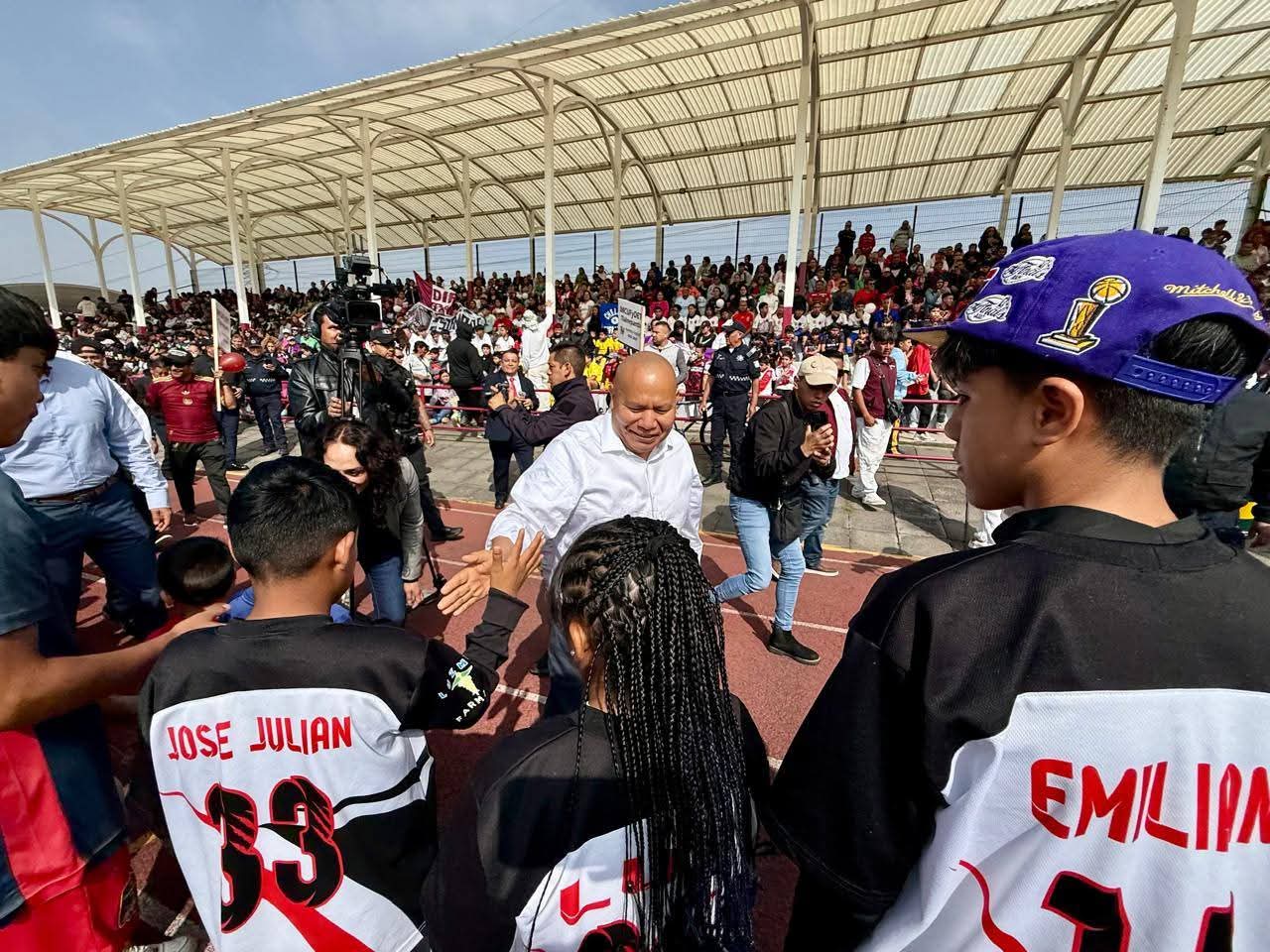 Pérez Cruz también destacó los trabajos de rehabilitación integral realizados en los deportivos “Edson Álvarez” y “Tlalnepantla”, así como el inicio de obras en el Deportivo Amazitlali, en la colonia Lázaro Cárdenas 3ª Sección. Este nuevo proyecto se lleva a cabo en coordinación con la Secretaría de Desarrollo Agrario, Territorial y Urbano (SEDATU) a través del programa federal “Vertiente Obras Públicas”, y contempla la instalación de cancha empastada, alumbrado, ejercitadores y juegos infantiles, en beneficio de más de 75 mil habitantes.