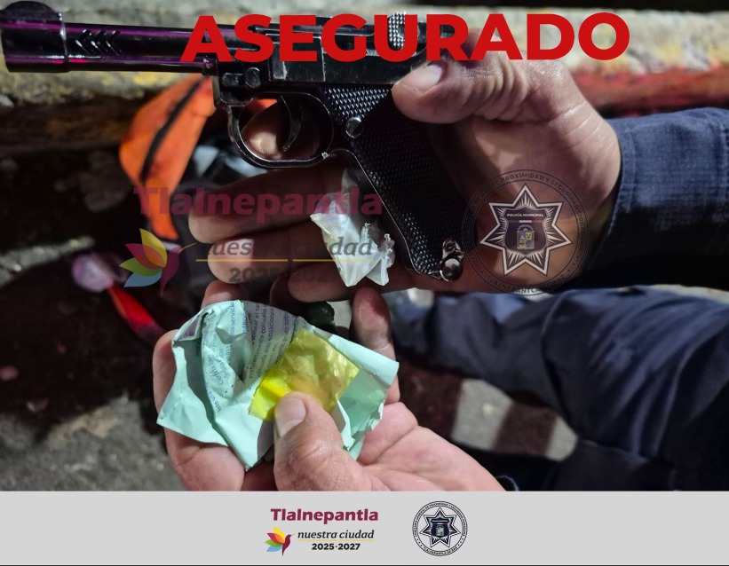 TLALNEPANTLA DE BAZ, México.- Durante un operativo interinstitucional fue detenido un sujeto que portaba una réplica de arma de fuego y bolsas con presunta droga. La movilización contó con la participación de elementos de la Comisaría General de Proximidad y Seguridad Ciudadana de Tlalnepantla, la Guardia Nacional y la Secretaría de Seguridad del Estado de México, como parte de las acciones de vigilancia y prevención del delito en el municipio.