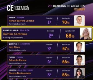 HUIXQUILUCAN DE DEGOLLADO, México.- Nuevamente la presidente municipal Romina Contreras Carrasco, destaca por colocarse a la cabeza en el Ranking...