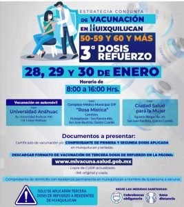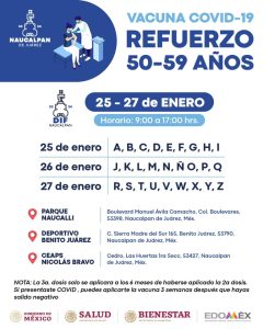HUIXQUILUCAN DE DEGOLLADO, México.- Del 28 al 30 de enero, se aplicará la vacuna de refuerzo contra covid-19 a personas...