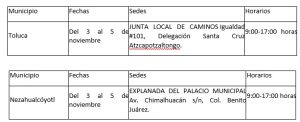 TOLUCA, México.- Del miércoles 3 al viernes 5 de noviembre, todas las personas mayores de 18 años de las regiones Oriente...