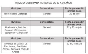 *** Esta semana se vacunará a adultos de 30 a 39 años. ATIZAPÁN DE ZARAGOZA, México.- Del lunes 19 de...