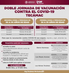 *Además, se aplicará la segunda dosis via personas de 50 a 59 años de edad TECÁMAC, México.- La primera dosis...