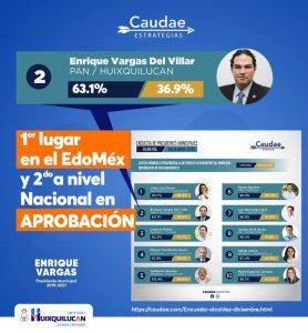 HUIXQUILUCAN DE DEGOLLADO, México.- La más reciente evaluación de la empresa Caudae Estrategias, establece que el alcalde de Huixquilucan...