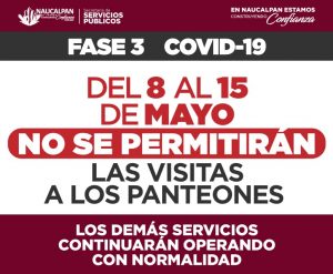 Suspende Naucalpan visitas a panteones del 8 al 15 de mayo NAUCALPAN DE JUÁREZ, México.- El Consejo Municipal...