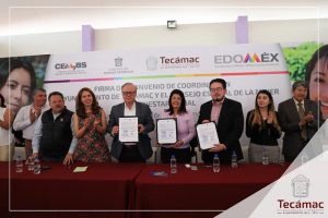 Durante la firma del Convenio de Coordinación entre el H. Ayuntamiento de Tecámac y el Consejo Estatal de la Mujer...