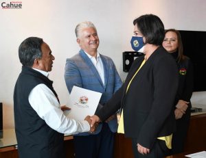 TOLUCA, México.- El dirigente sindical Herminio Cahue Calderón y el secretario de Desarrollo Financiero del Sindicato Único de Trabajadores del...
