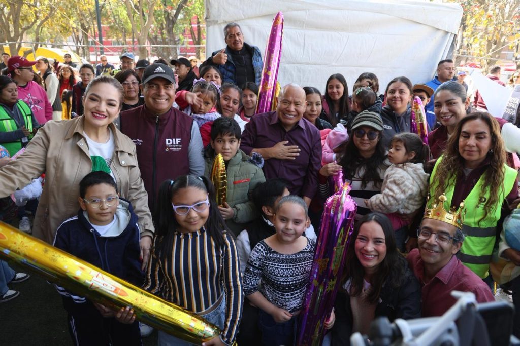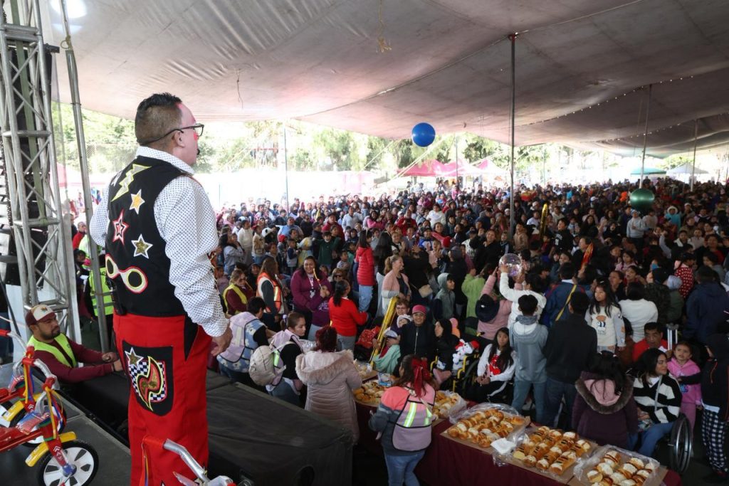 Acompañado por la presidenta honoraria del Sistema DIF, Rocío Pérez Cruz, el edil participó en la rifa de bicicletas, carros, muñecas, balones, juguetes didácticos y en la entrega de la tradicional rosca, en eventos que reunieron a miles de niñas, niños y sus familias.