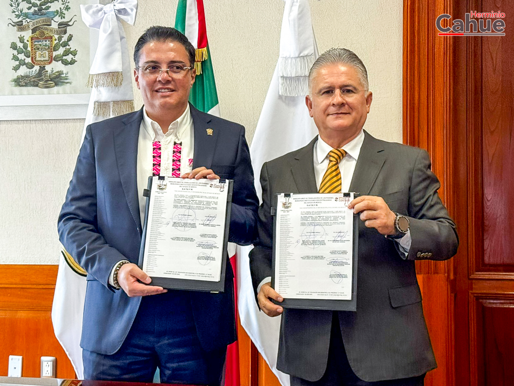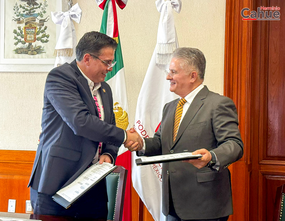Durante la Firma del Convenio de Sueldos y Prestaciones 2025 con el Poder Judicial del Estado de México, el dirigente Sindical Herminio Cahue Calderón, destacó “valoramos el esfuerzo económico, la buena voluntad y el respaldo a las y los suteymista y reconocemos la disposición de 𝗙𝗲𝗿𝗻𝗮𝗻𝗱𝗼 𝗗𝗶́𝗮𝘇 𝗝𝘂𝗮́𝗿𝗲𝘇, Magistrado Presidente del Poder Judicial”.