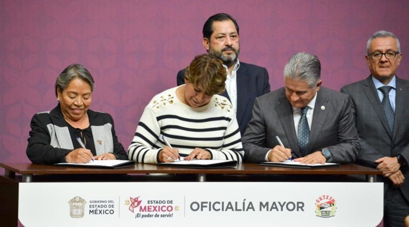 Durante el acto protocolario celebrado en el Palacio de Gobierno, Cahue Calderón reconoció la voluntad política y sensibilidad de la gobernadora Delfina Gómez Álvarez, destacando que este convenio fortalece los lazos institucionales y promueve el diálogo permanente.