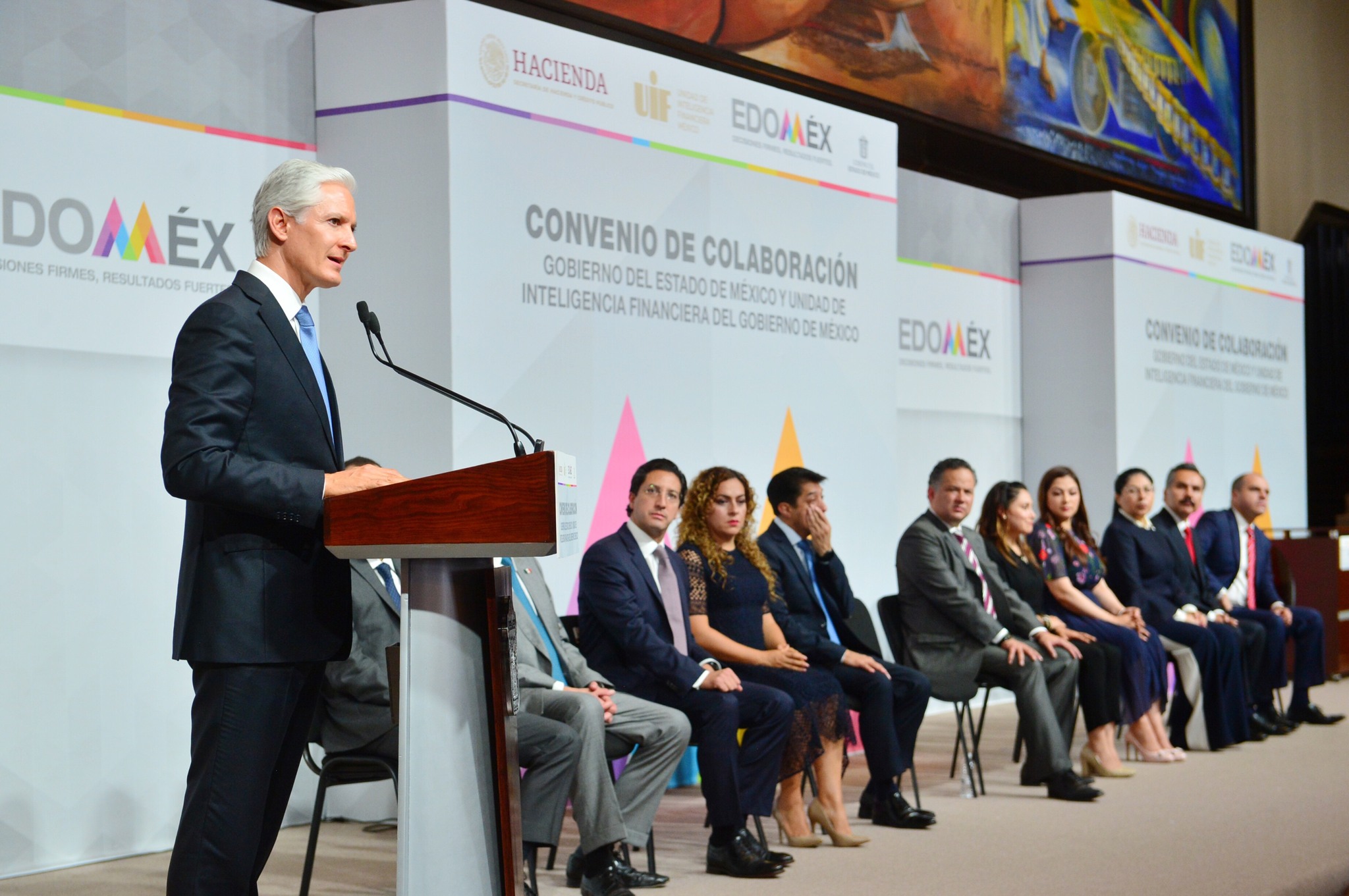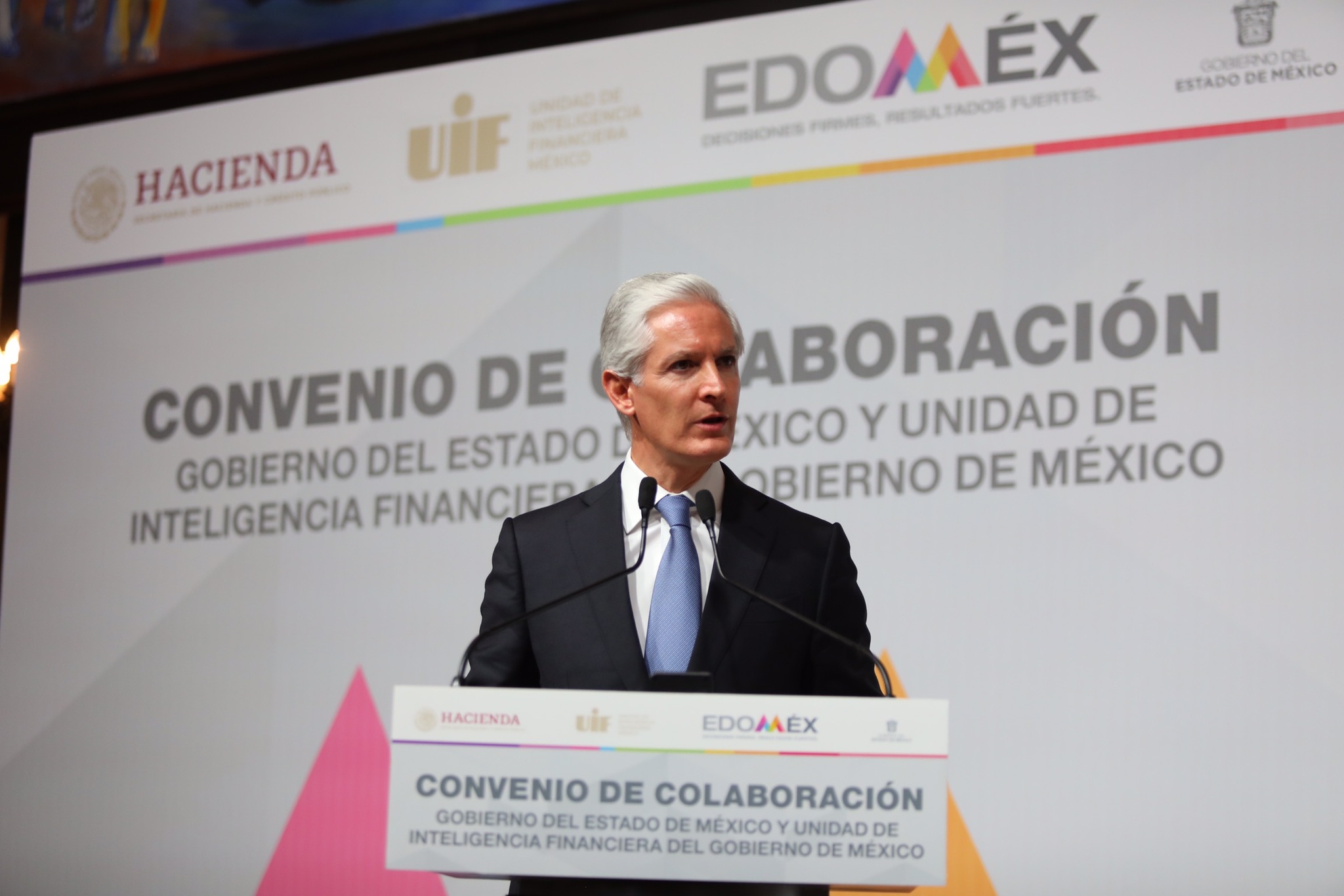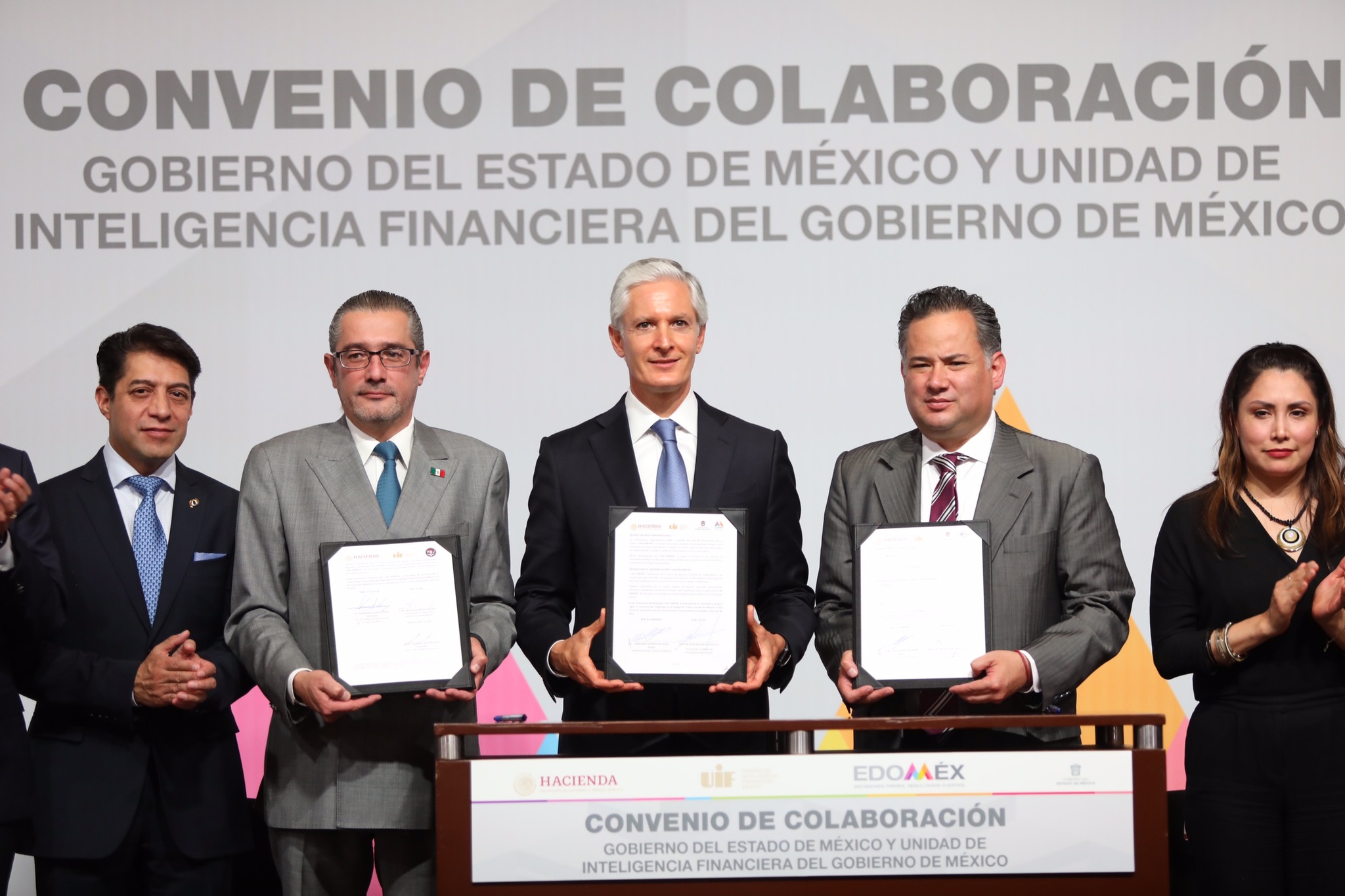 Como parte de estas acciones coordinadas, Alfredo Del Mazo y el titular de la Unidad de Inteligencia Financiera (UIF) de la Secretaría de Hacienda y Crédito Público, Santiago Nieto Castillo, firmaron un convenio de colaboración que tiene como finalidad combatir acciones como el lavado de dinero, operaciones con recursos de procedencia ilícita, actividades de financiamiento al terrorismo, así como hechos de corrupción contra el servicio público cometidos por servidores públicos y particulares.