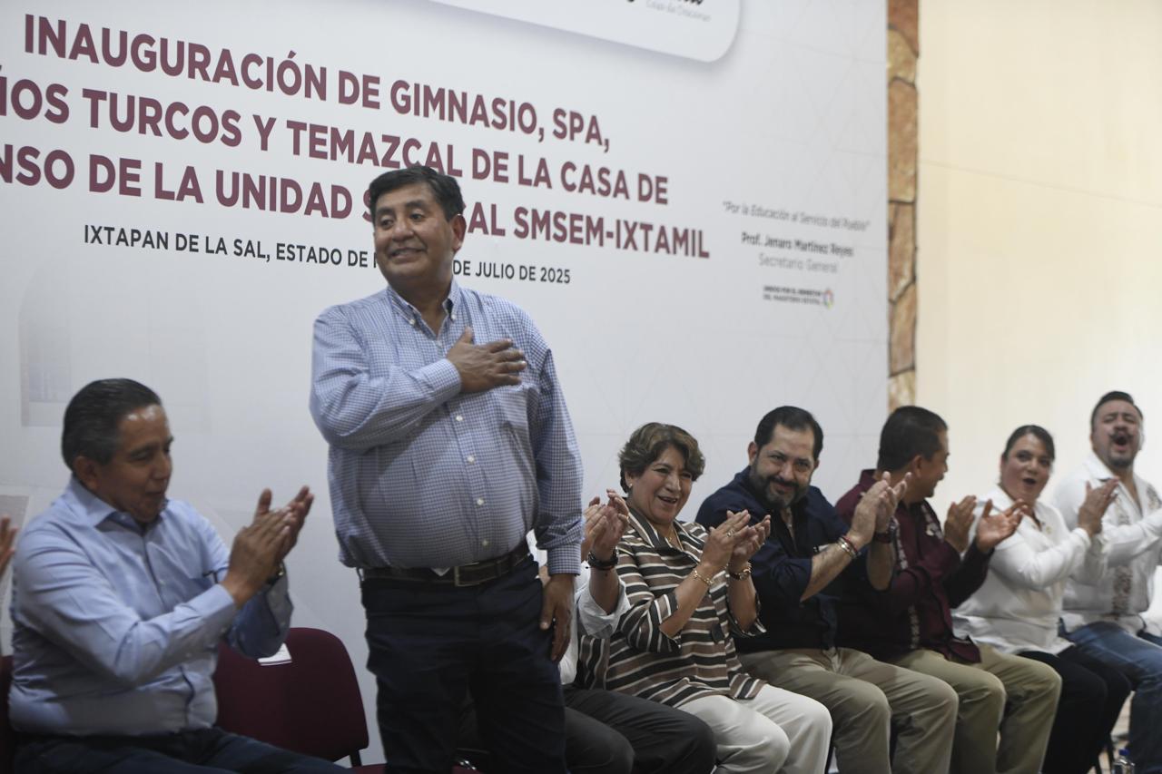 IXTAPA DE LA SAL, México.- Al asistir a la inauguración del spa, gimnasio, baño turco y temazcal, dentro de la Casa de Descanso de la Unidad Sindical SMSEM-Ixtamil, la Gobernadora Delfina Gómez Álvarez anunció la firma del Convenio de Sueldo y Prestaciones 2025 con el Sindicato de Maestros al Servicio del Estado de México (SMSEM), “con mucho gusto lo hacemos, antes del 15 de julio ya tenemos esa firma”.