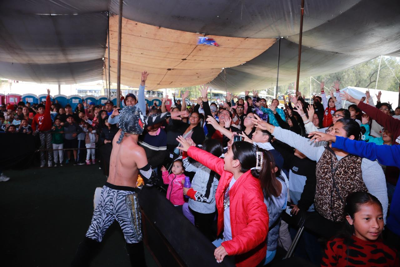 El programa artístico incluyó la presentación de “Las Guerreras K-pop”, una función de lucha libre profesional y espectáculos de payasos, que generaron un ambiente festivo y de sana convivencia entre los asistentes.