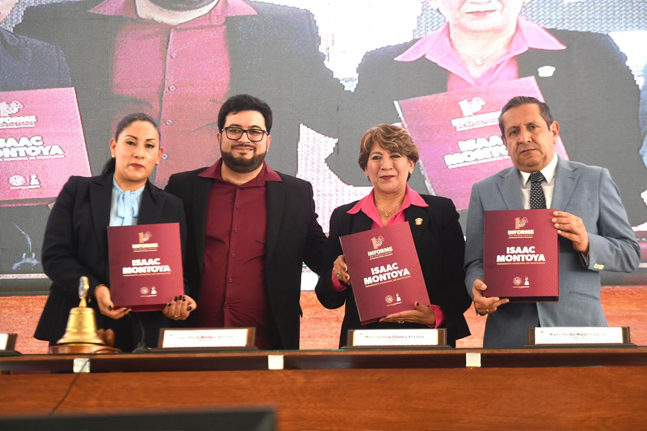 Durante la sesión solemne de Cabildo, el presidente municipal entregó el documento oficial a la gobernadora Delfina Gómez Álvarez y subrayó que, con inversión en obra pública, agua, servicios y seguridad, sí es posible transformar el municipio.