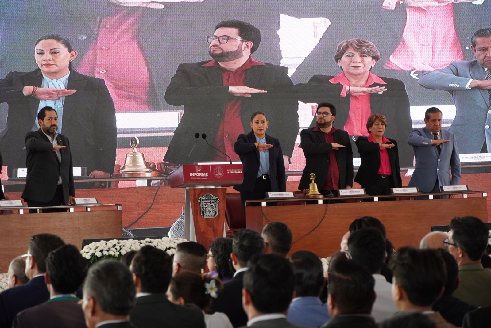 La gobernadora Delfina Gómez reconoció los avances impulsados por el municipio, como la instalación de la Universidad Rosario Castellanos, la operación de las farmacias del Bienestar y la próxima construcción de la Línea 3 del Mexicable. También anunció que el próximo año se rehabilitarán 55 kilómetros del Periférico Norte, beneficiando a más de siete millones de habitantes. Al acto asistieron legisladores, alcaldes, representantes empresariales y líderes comunitarios.