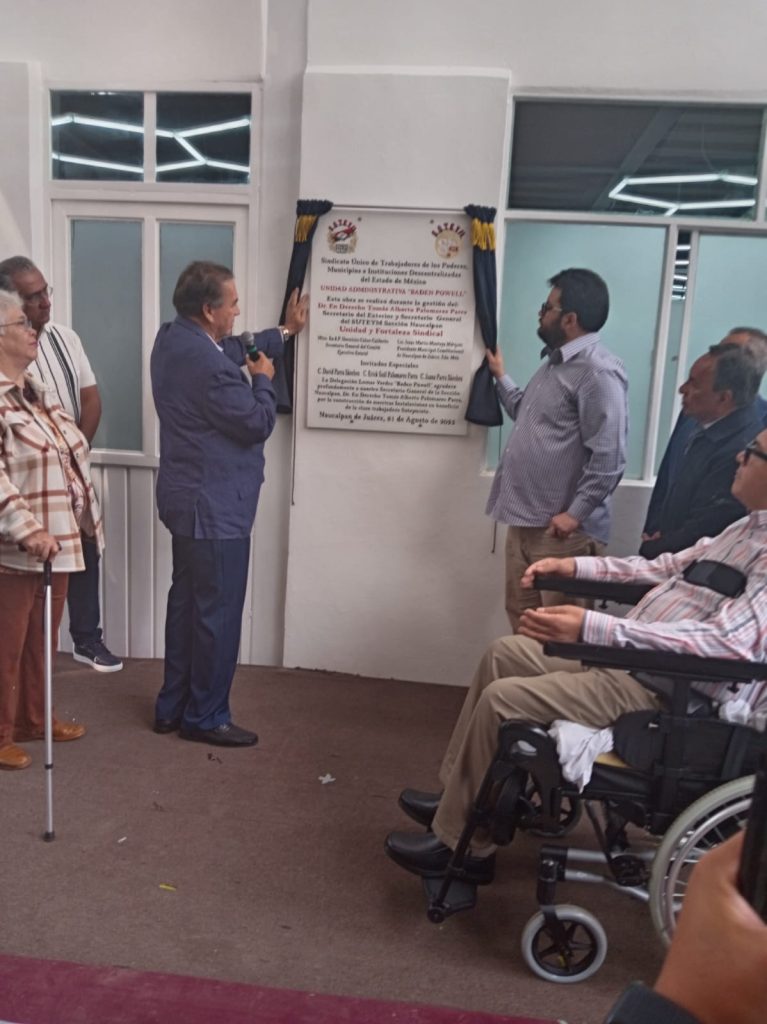 NAUCALPAN DE JUÁREZ, México. – “El trabajador merece lo mejor, merece tener instalaciones dignas”, afirmó Tomás Alberto Palomares Parra, secretario general del SUTEyM sección Naucalpan, al inaugurar la nueva Unidad Administrativa “Baden Powell” en el sector de servicios públicos de Lomas Verdes.