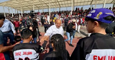 Además, entregó tinacos y balones en compañía de la directora del plantel, Magda Kitzyry, padres de familia que conforman la mesa directiva, así como el presidente del comisariato ejidal, Crisóforo Chamorro y del nuevo ejido de San Juan Pedro Cardoso.