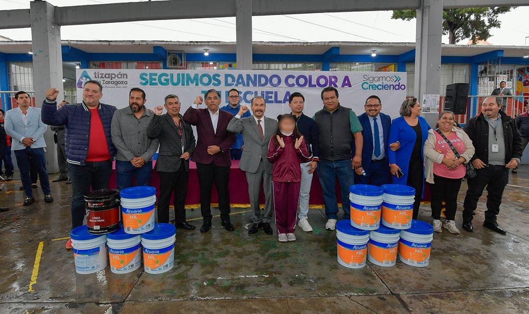 Durante su visita, el edil también entregó pintura como parte del programa “Dando color a tu escuela”, que busca rehabilitar espacios escolares para que las y los alumnos tengan entornos dignos y motivadores donde aprender y convivir.