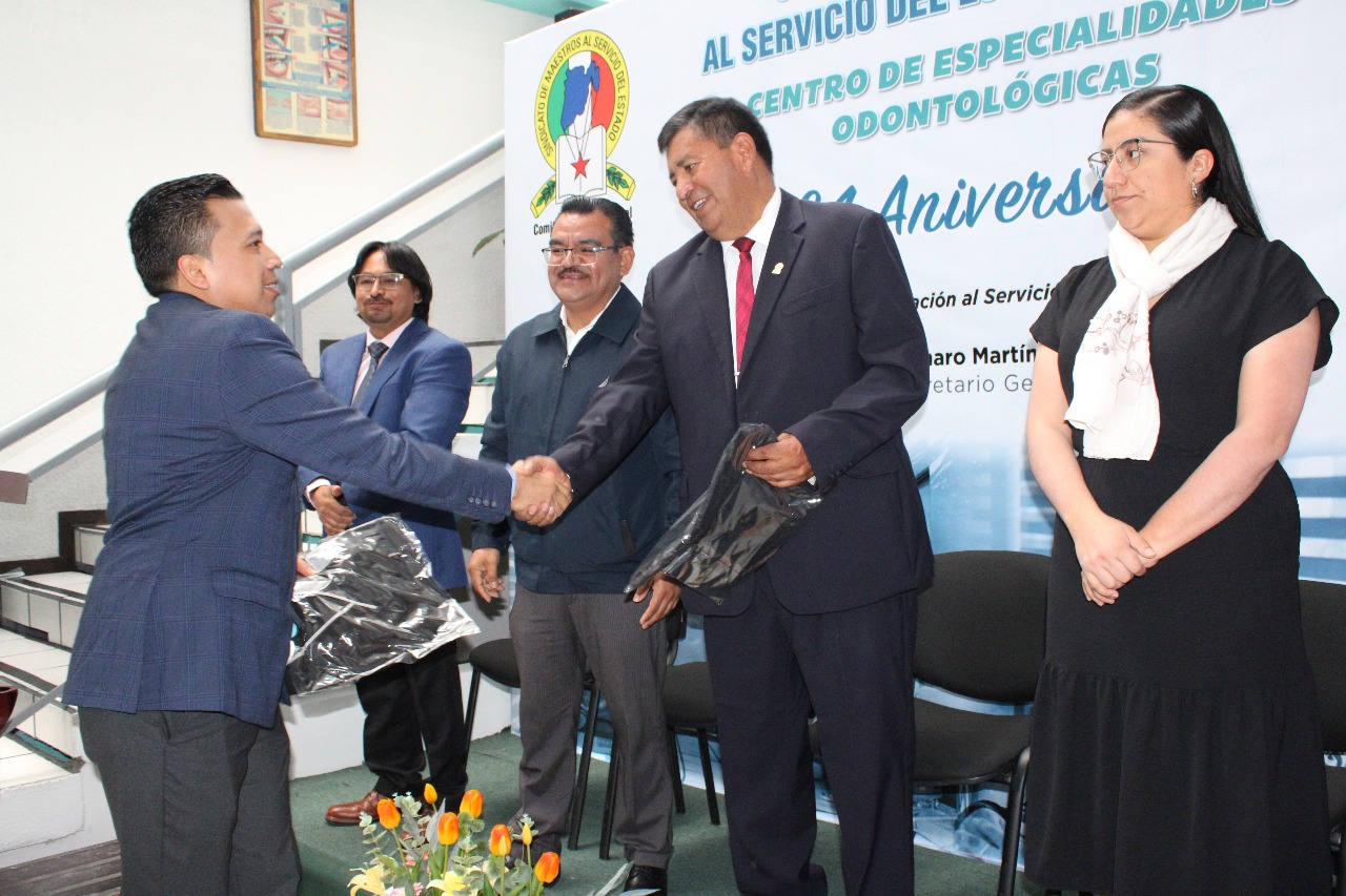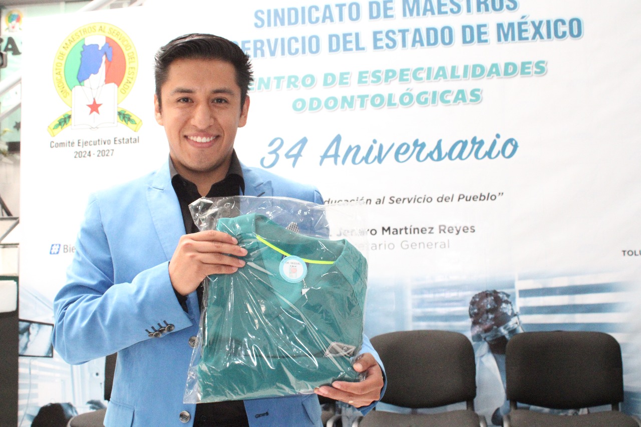 TOLUCA, México. “Hoy fortalecemos este centro con tecnología de punta y capacitación, porque la salud de las y los maestros es una prioridad para nuestro sindicato”, expresó Jenaro Martínez Reyes, secretario general del Sindicato de Maestros al Servicio del Estado de México (SMSEM), durante el 34 aniversario del Centro de Especialidades Odontológicas (C.Es.O).