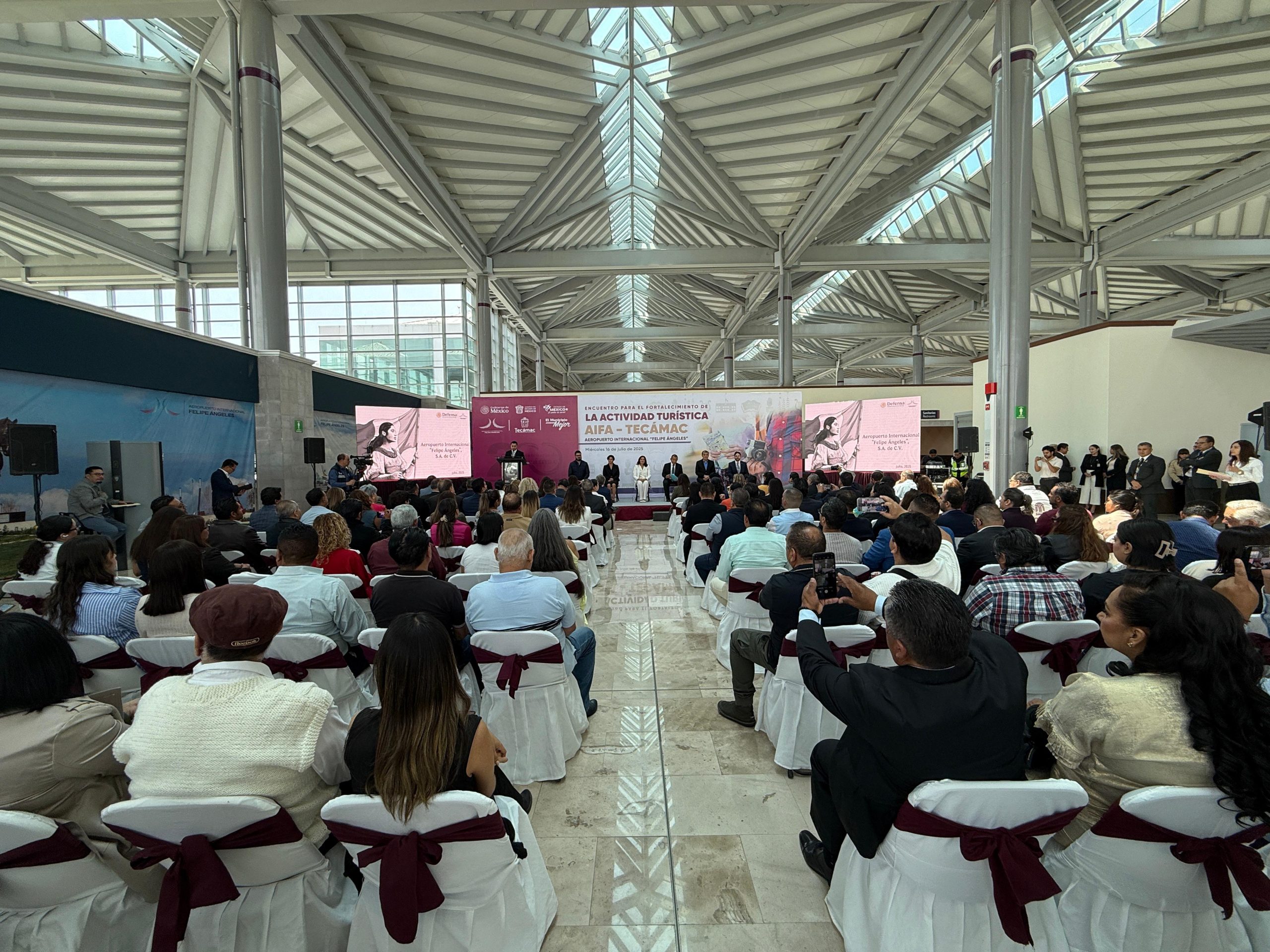 El encuentro que se realizó en las instalaciones del AIFA, destacó que Tecámac, se posiciona como antesala turística del Mundial 2026, la alcaldesa convocó a los empresarios, sociedad civil y autoridades a emprender una ruta de trabajo permanente para fortalecer el turismo como palanca de desarrollo económico.