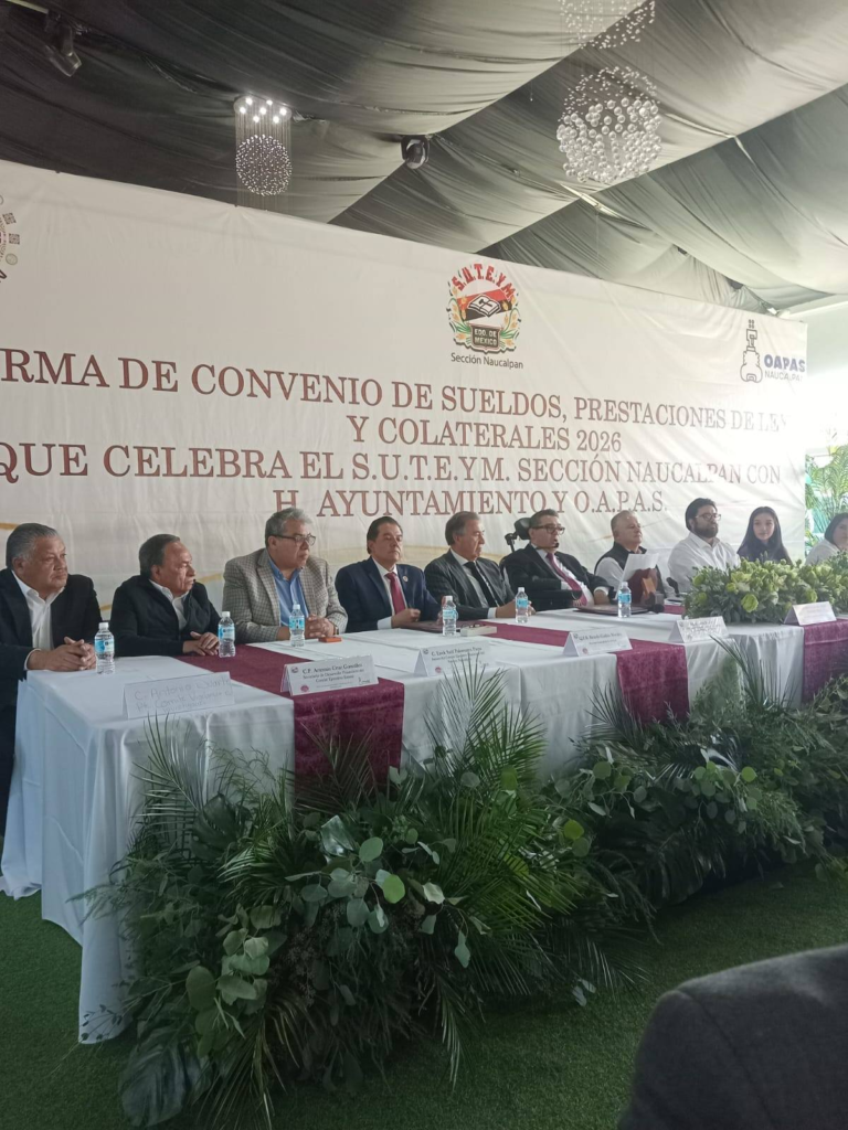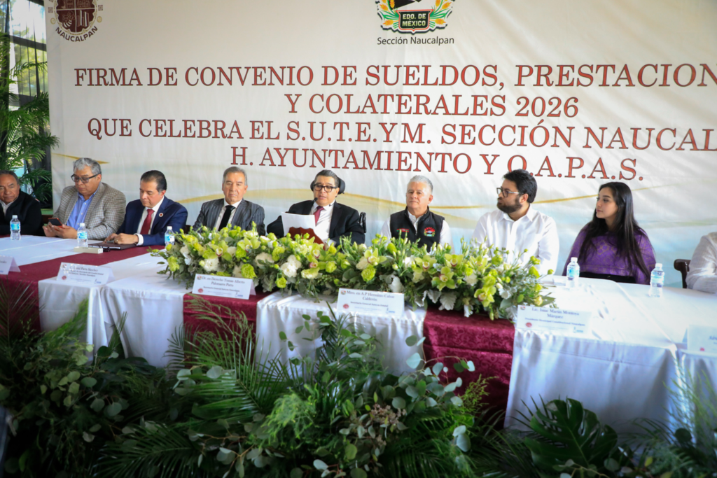 NAUCALPAN, México.- “Firmamos el convenio de sueldos, prestaciones de ley y colaterales 2026 con el SUTEYM sección Naucalpan, un acuerdo que refleja el respeto, la coordinación y la confianza entre el gobierno municipal y nuestras y nuestros trabajadores sindicalizados”, destacó Tomás Alberto Palomares Parra, quién reafirmó su compromiso con la defensa de los derechos laborales.